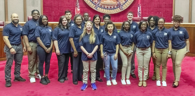Sixth Division volunteers and staff visit the courtroom of the Arkansas Supreme Court.