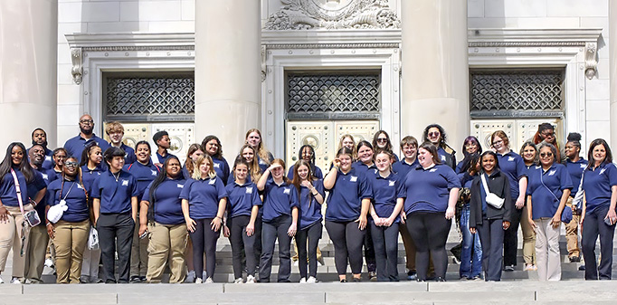 Teen Court staff and volunteers at the front entrance of the Arkansas State Capitol building.